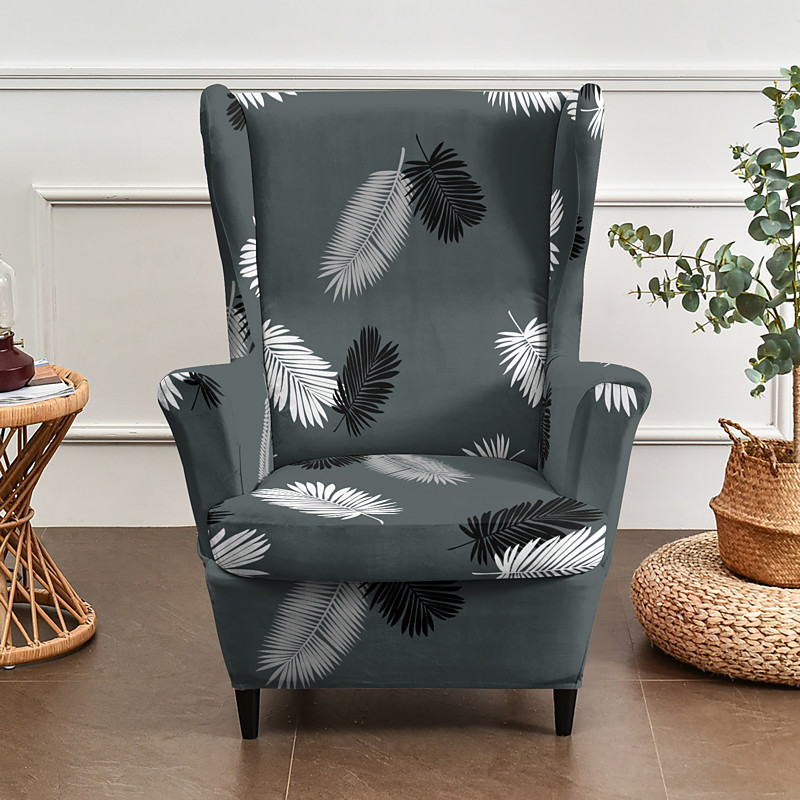 Printed Wingback Chair Slipcovers, Floral / Striped / Geometric Stretch Polyester Armchair Covers, Decorative Furniture Protectors