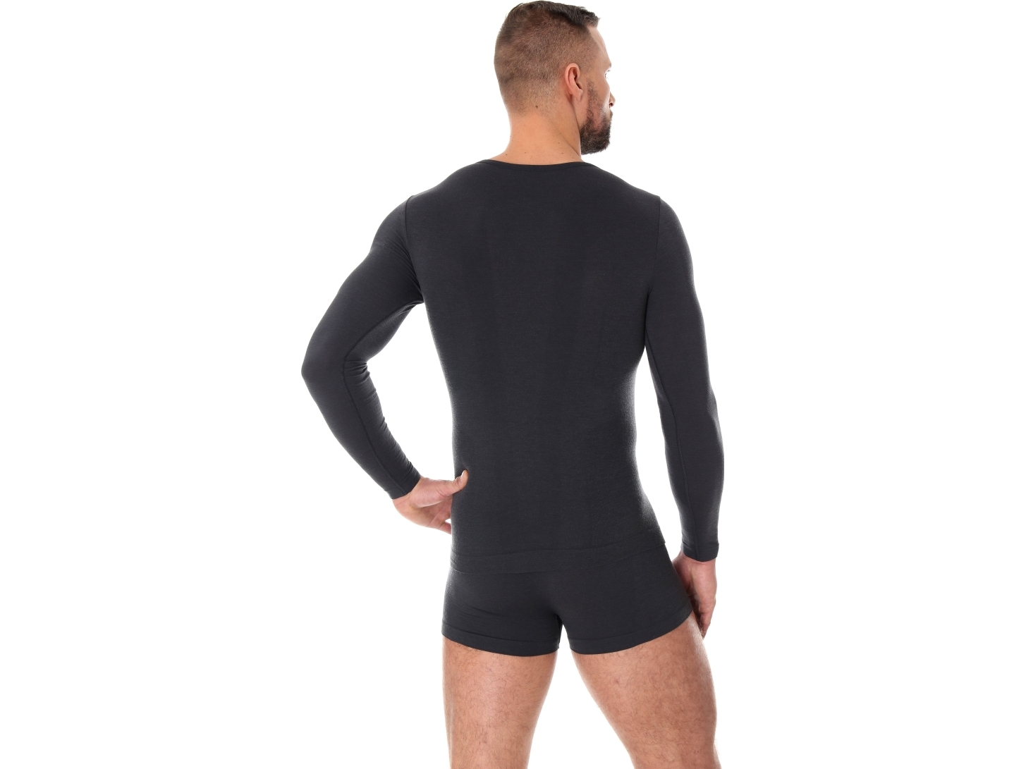 Brubeck T-skjorte herre med lange ermer Comfort Wool grafittgrå str. XXL (LS11600)