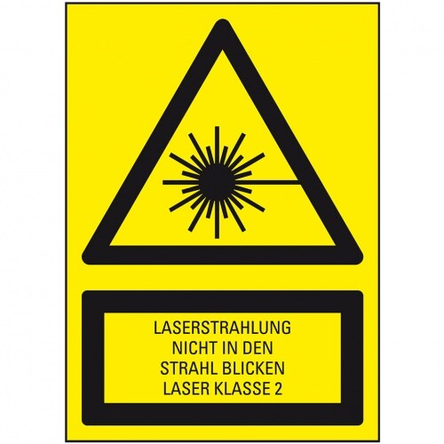 König Werbeanlagen Dreifke® Aufkleber I Warn-Kombischild Laserstrahlung Laser Klasse 2, Folie, selbstklebend, 50x70mm, 3/Bogen