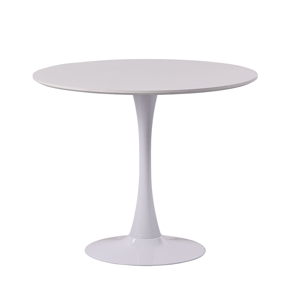RATTATAN Runder Innentisch, Durchmesser 90 cm, für 4 Personen, MDF-Platte in Holzoptik, Metallgestell, geeignet für Küche, Esszimmer, Büro–ORLANDO–Weiß