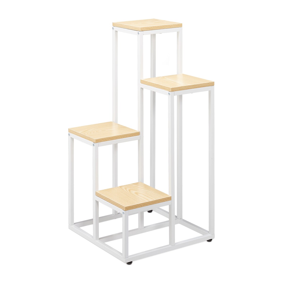 Relaxdays Blumentreppe, 4 Ablagen, HxBxT 100 x 40 x 40 cm, platzsparend, Stahl und MDF, Design Blumenetagere, weiß-natur