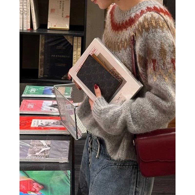 Per donna Maglione Fair Isle Maglione Elegante Vintage Streetwear Geometrico A Coste Girocollo Floreale Manica Lunga Top Regolari Maglia Scuola All'aperto Casa Bianco Rosso Primavera Autunno