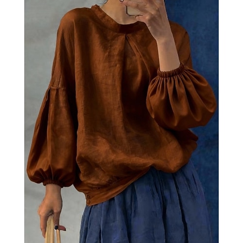 Per donna Camicia Semplice Signore Manica Lunga Manica a Lanterna Colletto a Camicia Top Regolari Lavoro Quotidiano Volant Bottoni Verde primavera Verde Beige Rosa Estate Primavera
