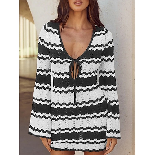 Women's Sweatshirt Dress Mini Dress Casual Dress Active Fashion Outdoor Going out Weekend Crew Neck Print Geometric Color Block Loose Fit Black Brown Green S M L XL XXL
