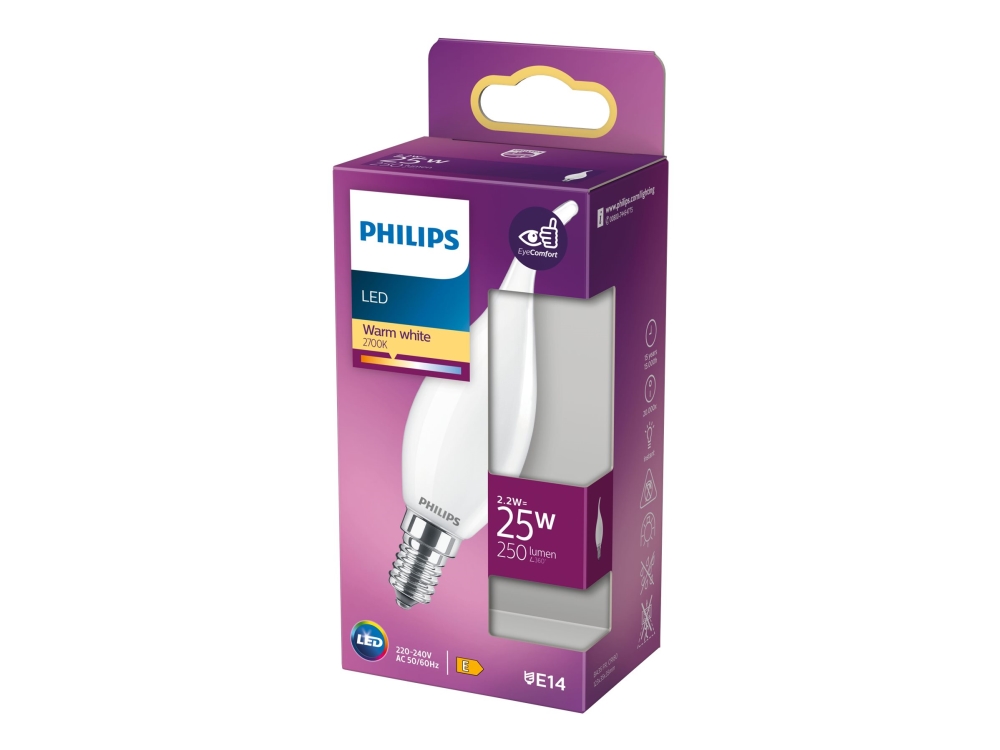 Philips Lampen in Kerzen- und Tropfenform, 2,2 W, 25 W, E14, 250 lm, 15000 h, Warmweiß