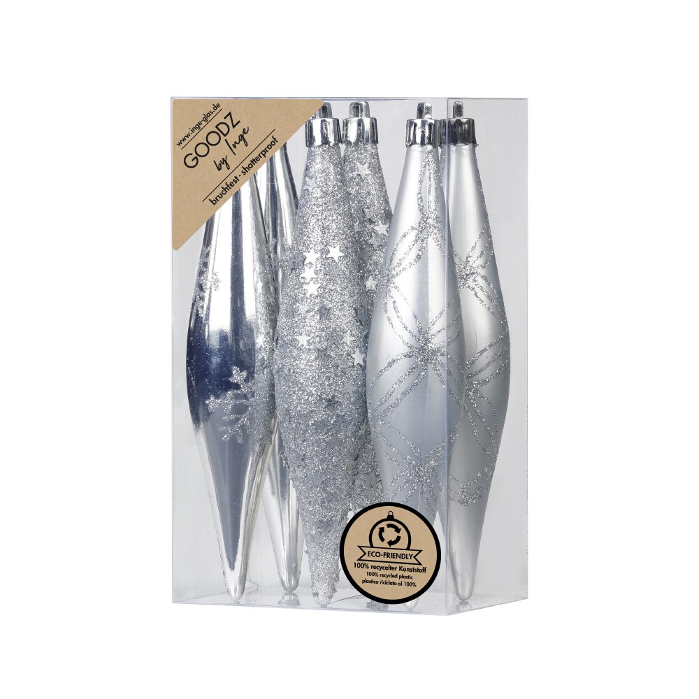 Inges Glas Christbaumschmuck Eiszapfen Kunststoff 15 cm 6 Stück silber