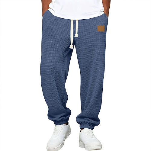 Herren Baggy-Jogginghose Jogginghose Hose Waffelhose Kordelzug Tasche Elastischer Bund Einfach Komfort Sport im Freien Täglich Mode Lässig Blau Schwarz Mikroelastisch