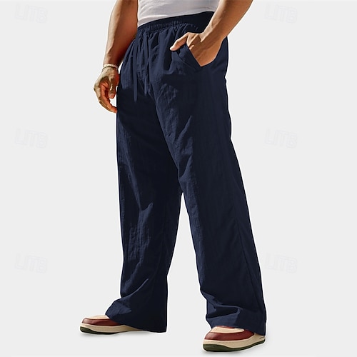 Herren Leinenhosen Hose Baggy-Hosen Freizeithose Kordelzug Tasche Elastischer Bund Einfach Komfort Sport im Freien Täglich Mode Lässig Blau Schwarz Mikroelastisch