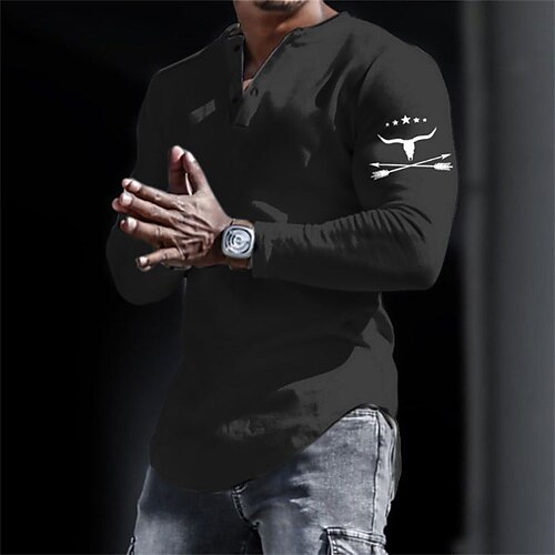 Herren Grafik Cowboy Henley Hemd Langarm 3D-Druck Mode Täglich Lässig Lässig Ferien Ausgehen Frühling Herbst Schwarz Weiß Gelb Grau Henley Henley T-Shirt