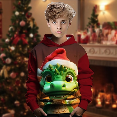 Weihnachten Jungen 3D Dinosaurier Kapuzensweatshirt Langarm Frühling Herbst Mode Streetwear Kinder 4-12 Jahre Mit Kapuze Outdoor Lässig Täglich Normale Passform