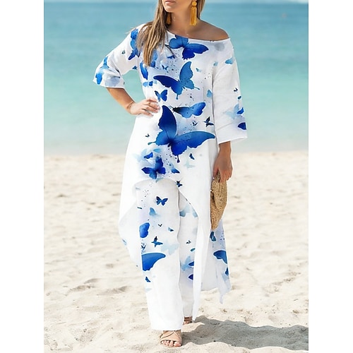 Per donna Set da due pezzi Set di Pantaloni Bolero Top Manica Lunga Girocollo Senza Spalle Floreale Grafico Vacanza Moda Streetwear Casuale Quotidiano Spiaggia Bianco Rosa Blu Reale Estate