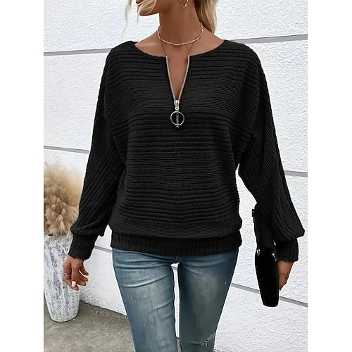 Per donna Blusa Tinta unica Elegante Casual Manica Lunga Girocollo Top Regolari Quotidiano Cerniera Nero Rosa Verde Cachi Grigio Primavera Autunno Inverno
