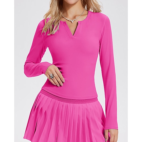 Per donna Tinta unita Maglia da tennis Top sportivo Elegante Elastico Traspirante Golf Pickleball Yoga Scollo a V Top Inverno Nero Bianco Giallo Abbigliamento da tennis