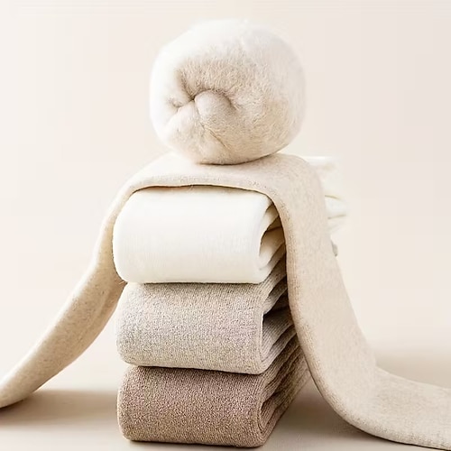3 Paar dicke Damen-Overknee-Socken – Schutz vor extremer Kälte – Beige/Schwarz/Grau – Warme Wintersocken für Alltag und besondere Anlässe – Rippbündchen, Fleecefutter, weiches Material, ideal für