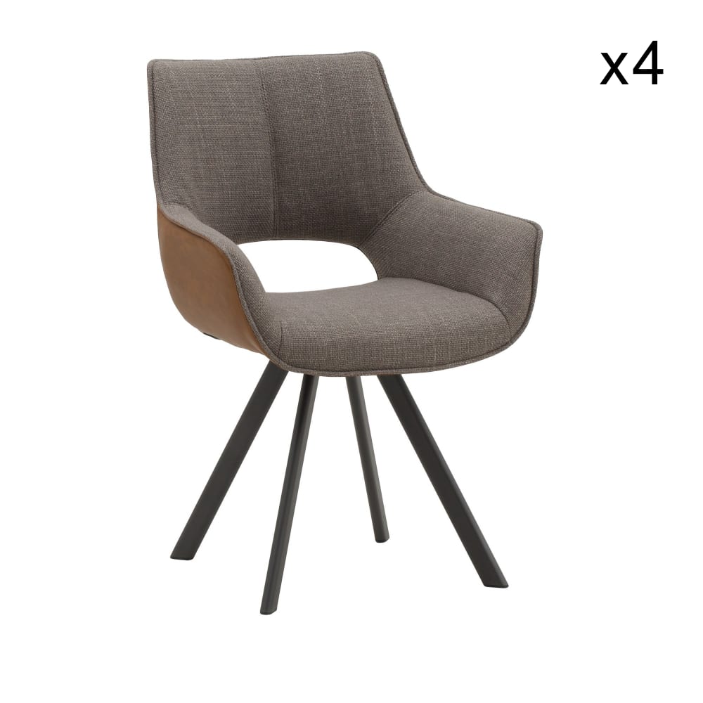 Set di 4 sedie in similpelle marrone,tessuto grigio,gambe metallo nero
