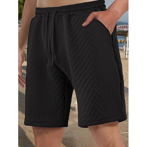 Per uomo Shorts Pantaloncini casual Jacquard Testurizzato Semplice Comodità Traspirante Lunghezza al ginocchio Casuale All'aperto Spiaggia Vacanza Moda Nero Bianco Micro-elastico