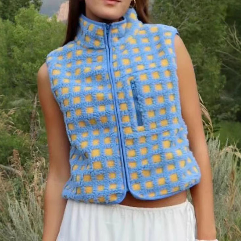 Women's Blouse Plaid Elegant Vintage Stylish Sleeveless High Neck Regular Tops Holiday Going out Zipper Blue Black Red Green Winter