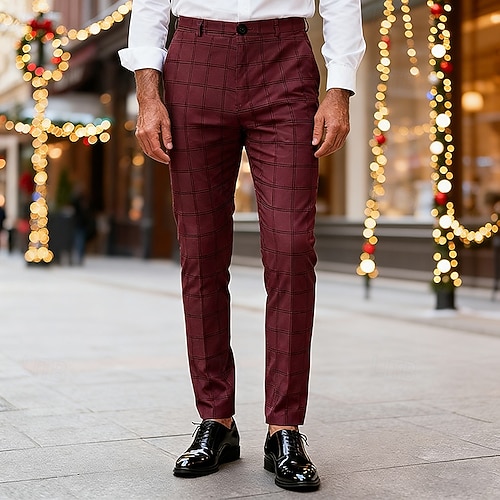 Men's Trousers Chinos Slacks Jogger Pants Plaid Dress Pants Plaid Checkered Comfort Soft Office Business Streetwear Smart Casual Red Purple Inelastic