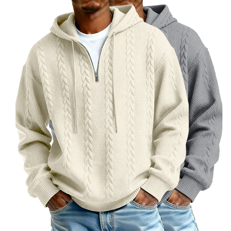 Men's Jacquard Hoodie Quarter Zip Hoodie ApricotGray Light BlueBlack WhiteLight Gray Light GreenNavy Blue Light BluePurple Hooded Plain Textured Casual Daily Sports Outdoor Streetwear Cool