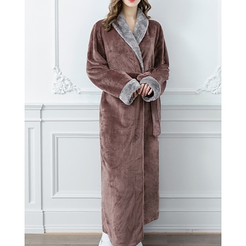 Per donna Pigiama Accappatoio Flanella Moda Casual Colore Puro Arricciato Casa Quotidiano Da letto Manica Lunga Scollo a V Rosa Rosso Viola Beige Autunno Inverno
