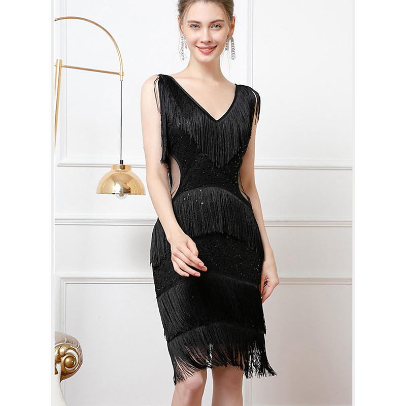 Roaring 20s 1920s Knee Length Flapper Dress Sleeveless The Great Gatsby Flapper Girl Sequins Fringe V Neck Fancy Dress Women's Christmas Carnival Masquerade Retro Theme Party Charleston Dance Adults