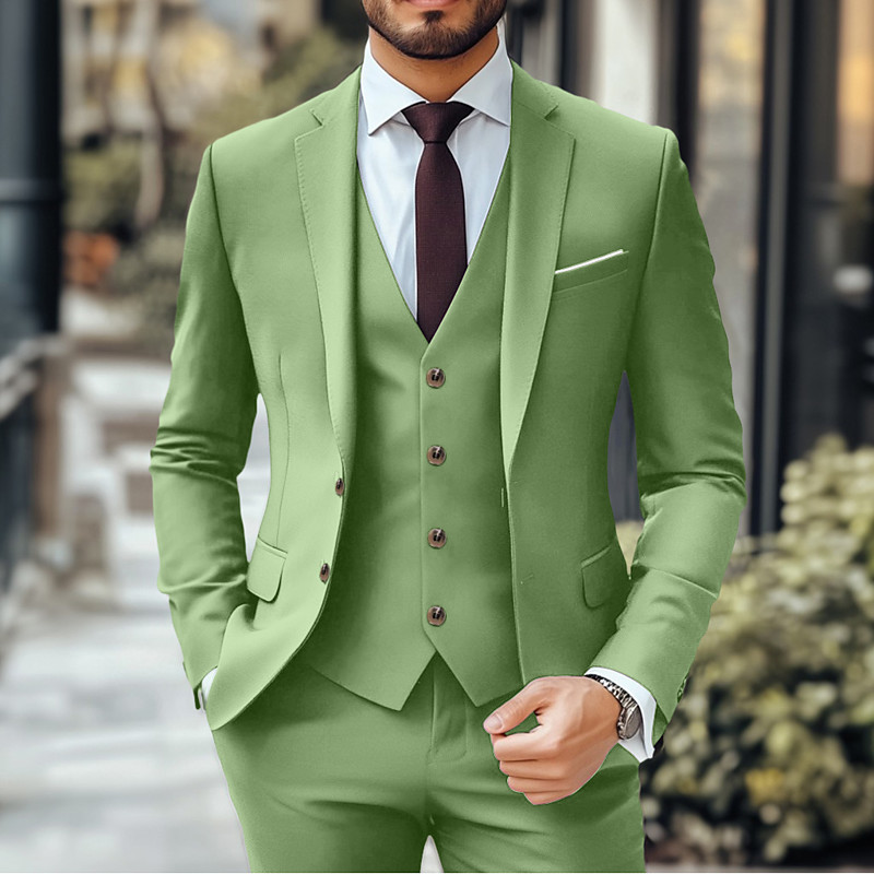 Men's Wedding Winter Wedding Suits Champagne Sage Fashion Formal Solid Colored Tailored Fit 3 Piece Single Breasted Two-buttons