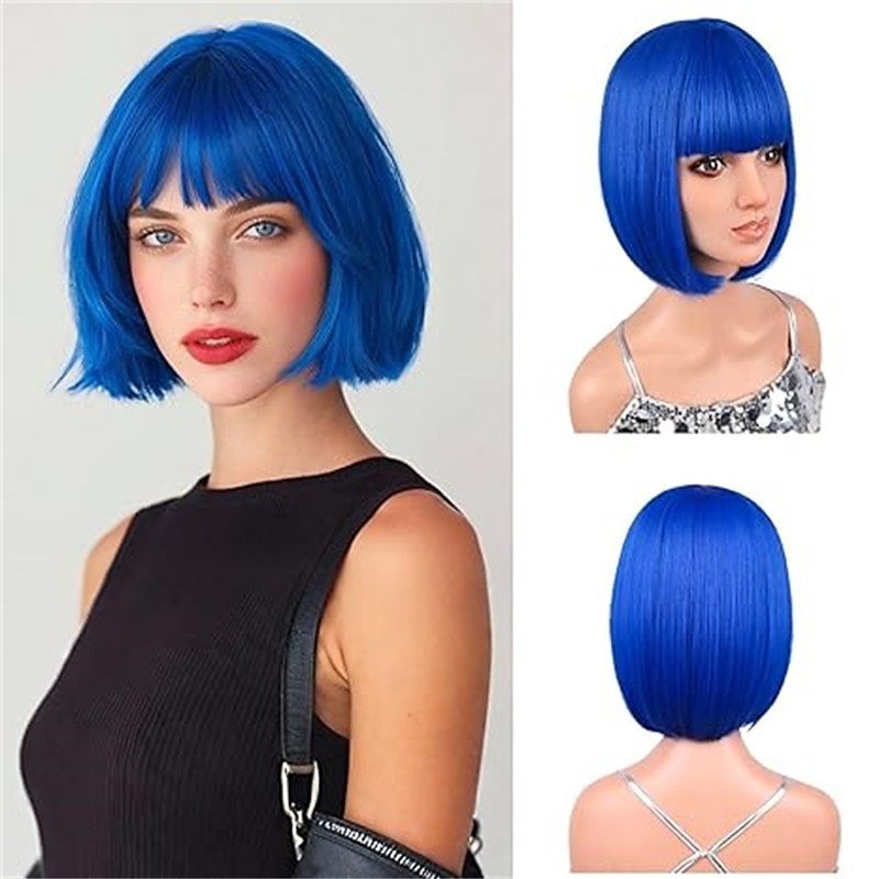 Synthetic Wig Straight Bob Wig Short Blue Synthetic Hair Women's Synthetic New Arrival Blue Halloween Wigs
