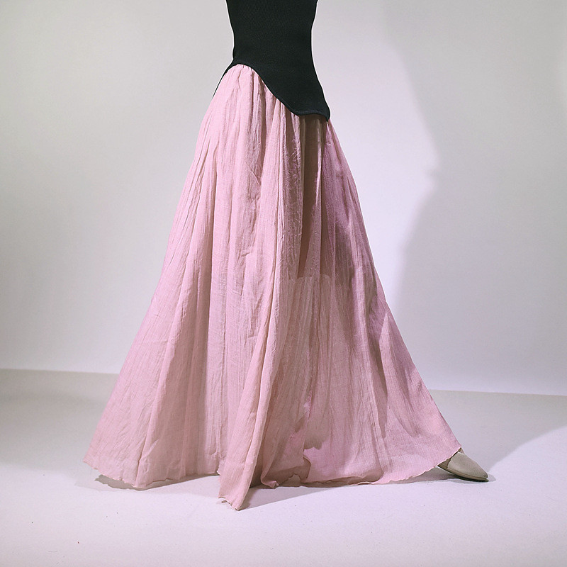 Women's Linen-Inspired Skirts Casual Maxi High Rise Plain Ruched Drawstring Micro-elastic Going out Casual Daily Wine Black Army Green Light Purple Summer Cotton