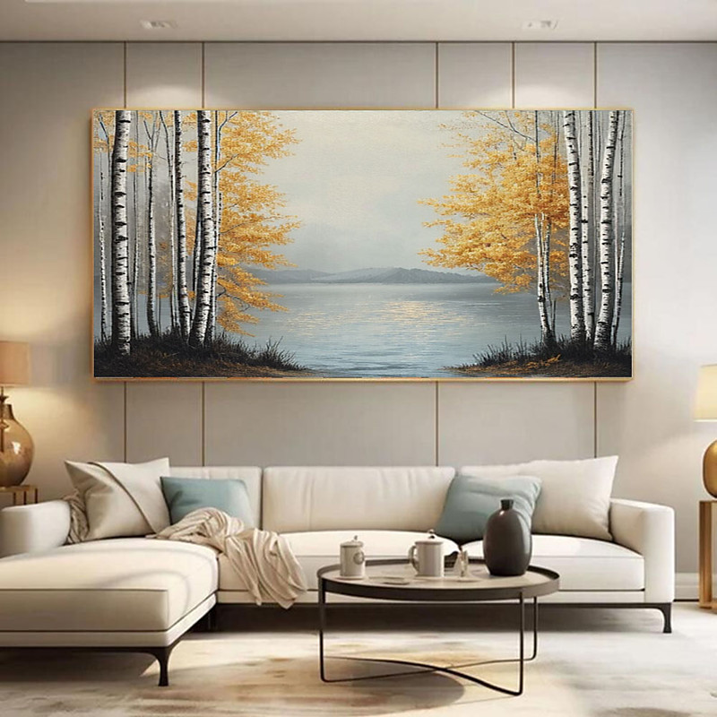 Birch Trees Autumn Forest River Vintage Painting Style Canvas Wall Art Farmhouse Decor Art Nature Picture Wall Hanging Fine Art Painting