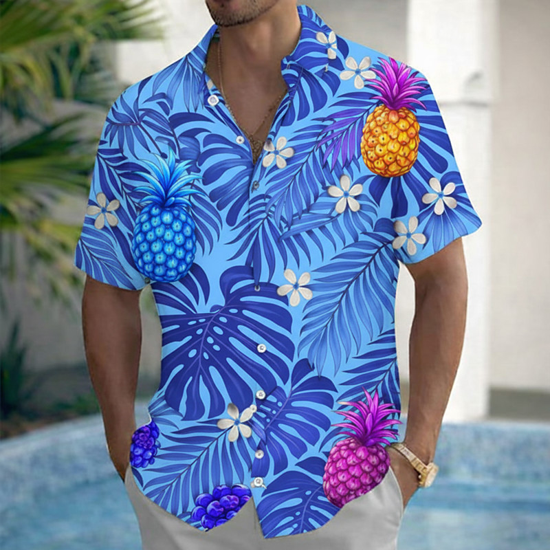 Men's Palm Leaf Tropical Plants Flowers Summer Hawaiian Shirt Button Up Shirt Aloha Shirt Short Sleeve Hawaiian Holiday Beach Wear Summer Spring Turndown 3D Print Collared Shirts Blue Purple Green
