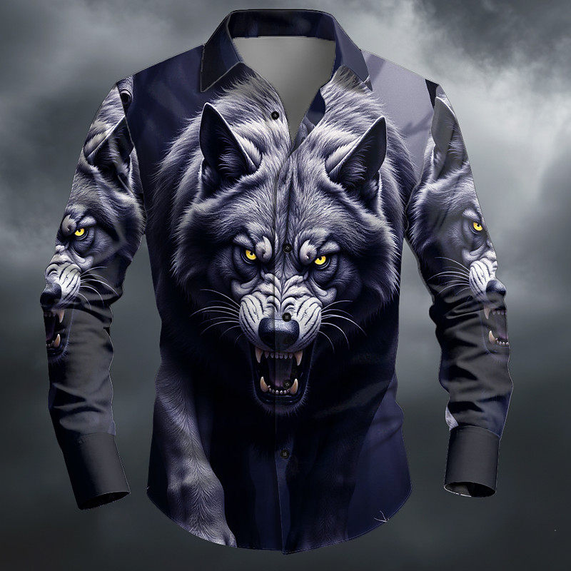 Men's Animal Optical Illusion Wolf Shirt Button Up Shirt Long Sleeve Fashion Casual Outdoor Dailywear Spring Fall Turndown 3D Print Collared Shirts Black Purple