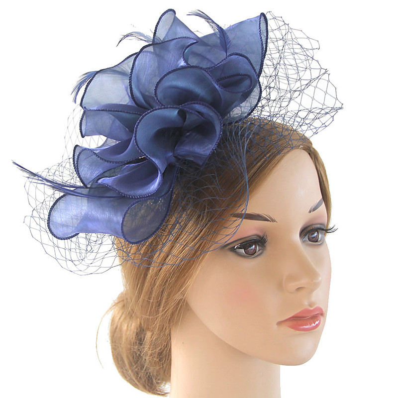 Fascinators Kentucky Derby Hat Organza Polyester / Polyamide Fedora Hat Floppy Hat Veil Hat Tea Party Horse Race Ladies Day Vintage Vintage Style Elegant With Feather Appliques