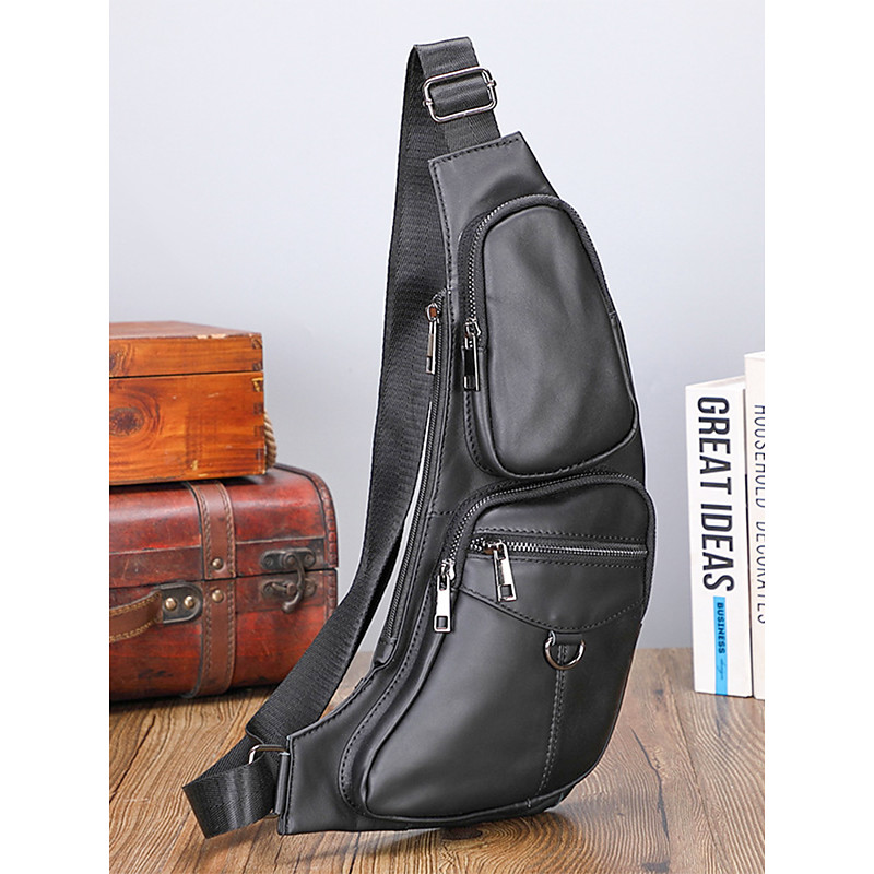 Men's Canvas Sling Bag - Durable Crossbody Shoulder Backpack with Zipper Pockets, Casual Style for Travel, Hiking and Daily Use Black Army Green Blue
