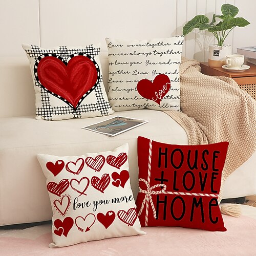 federa per cuscino di San Valentino, cuscino in lino con stampa a cuore, comodo divano decorazioni per auto, morbidi cuscini decorativi per soggiorno, camera da letto, interni auto