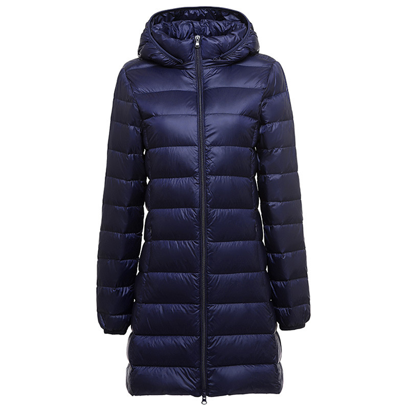 Women's Down Jacket Coat Warm Comfortable Zipper Pocket Fashion Plain Holiday Casual Daily Weekend Zipper Long Hooded Regular Fit Long Sleeve Outerwear Navy Wine Blue Fall Winter