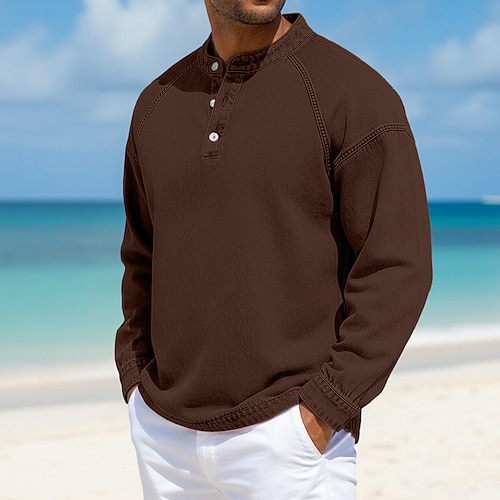 Per uomo Maglietta Maglia Henley Camicia 100% cotone lavaggio acido Manica Lunga Collo alla coreana Henley Estate Primavera Autunno Semplice Vintage Streetwear Casual Lavato Manica corta Casuale Casa