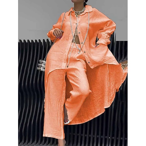 Per donna Set di Pantaloni Bolero Top Manica Lunga Colletto a Camicia Semplice Moda Streetwear All'aperto Vacanza Ferie Nero Bianco Blu marino Estate Vestibilità comoda
