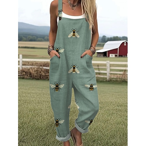 Per donna Salopette Attivo Floreale Senza Maniche Harem Coulisse con tasca Vacanza Streetwear Vestibilità comoda Giallo Rosso Blu Estate