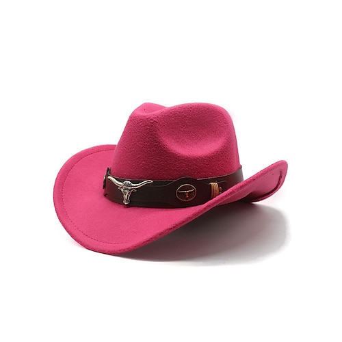 Cappello da cowboy western da uomo con fascia a testa di toro – fedora vintage in feltro a tesa larga per rodeo, stile outdoor e regalo di Natale