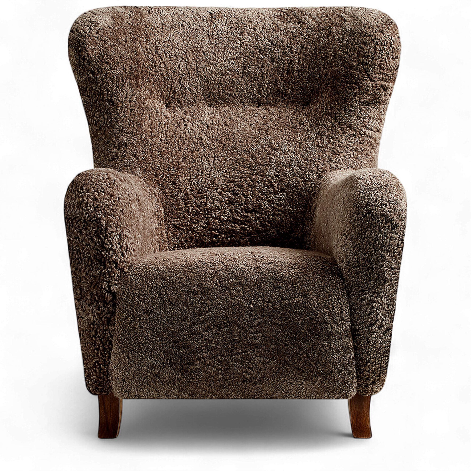 &Tradition - Wulff Lounge Chair ATD2 & Pouf ATD3, Sheepskin Moonlight, Oak - Fåtöljer - Vit - Trä/Textilmaterial/Syntetiskt/Skum