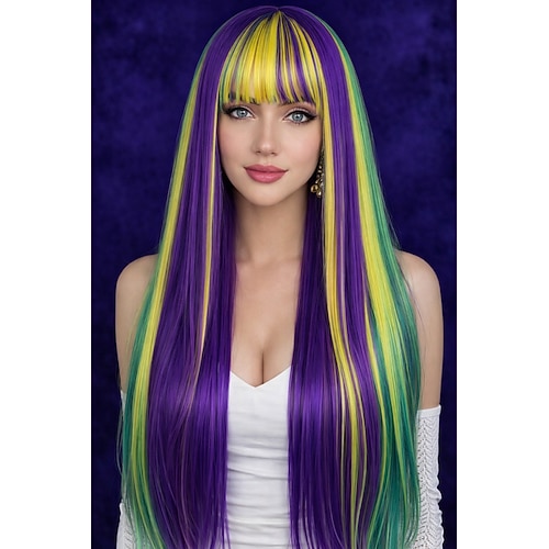 parrucca di carnevale arcobaleno liscia lunga sintetica parrucca da festival sfilata di martedì grasso costume cosplay capelli per donne
