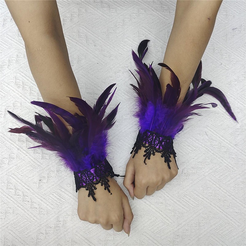Accessori Samba per il Carnevale 2026 Rio Carnival - Guanti da Polso in Pizzo a Piuma Viola per Donne Manicotti Gotici Burlesque con Ricamo Nero Costume per Performance Festival in Brasile