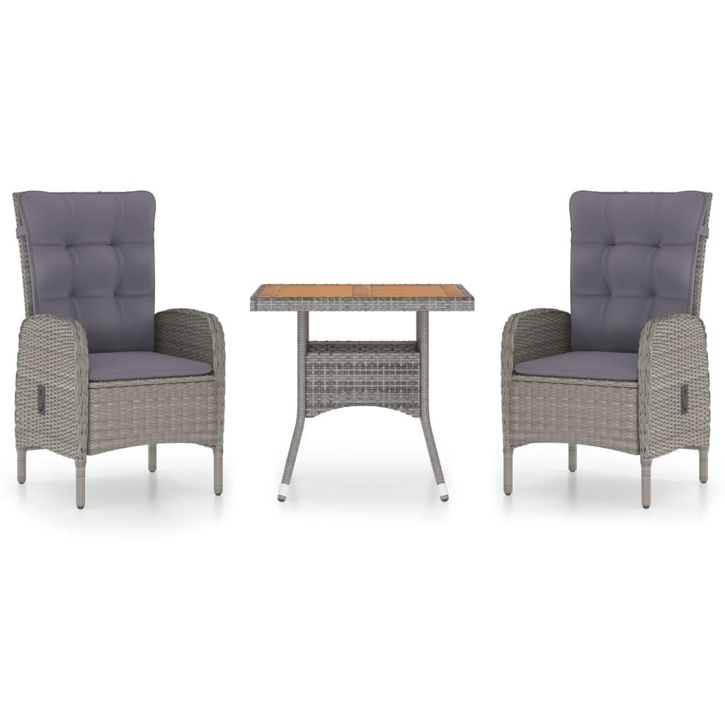 Spisebordssæt til haven 3 dele polyrattan og akacietræ grå