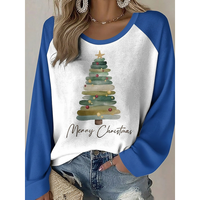 Christmas Women's Christmas Tree T Shirt Graphic Vintage Stylish Classic Long Sleeve Crew Neck Round Neck Regular Tops Daily Weekend Print Black Red Green Spring Fall Winter
