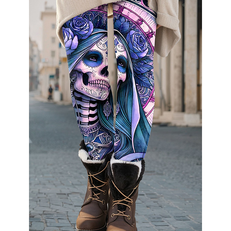 Women's Leggings Vacation Vintage Fashion Full Length High Waist Graphic Skull Abstract Printing Soft Breathable Stretchy Formal Outdoor Vacation Blue Purple Green Gray Spring Fall Winter Loose Fit