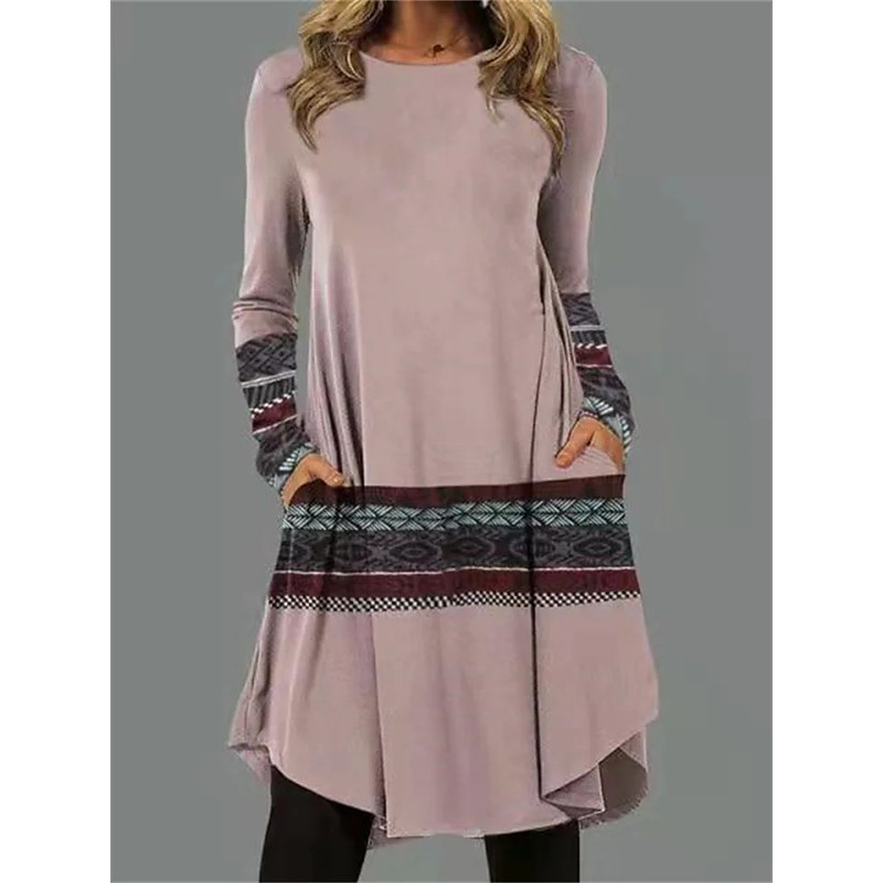 Women's Midi Dress Sheath Dress T Shirt Dress Tee Dress A Line Dress Athletic Dress Casual Boho Daily Loose Fit Graphic Geometric Houndstooth Long Sleeve Crew Neck Black Pink Blue Dark Grey