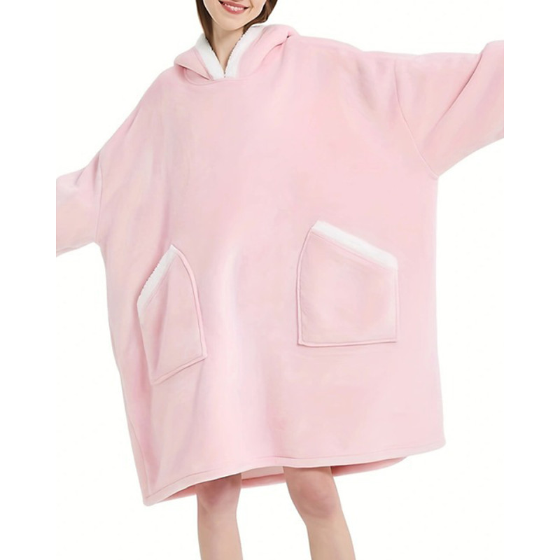 Women's Pajamas Loungewear Casual Wearable Blanket Hoodie Pure Color Pocket Vacation Home Daily Long Sleeve Hoodie Pink Light Grey Dark Blue Fall Winter Loose Fit