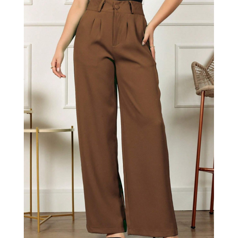 Women's Chinos Straight Streetwear Casual Full Length Medium Waist Plain Pocket Elastic Waist Comfort Comfortable Inelastic Daily Outdoor Vacation dark brown Apricot Grey Black Spring Fall Loose Fit