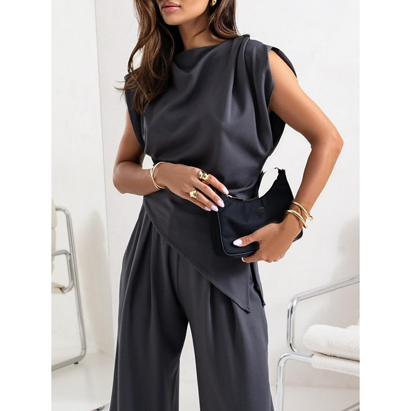 Women's Elegant Fashion Streetwear Pants Sets Bolero Top Sleeveless Crew Neck Solid Color Casual Daily Outdoor Dark Grey Black White Summer Loose Fit