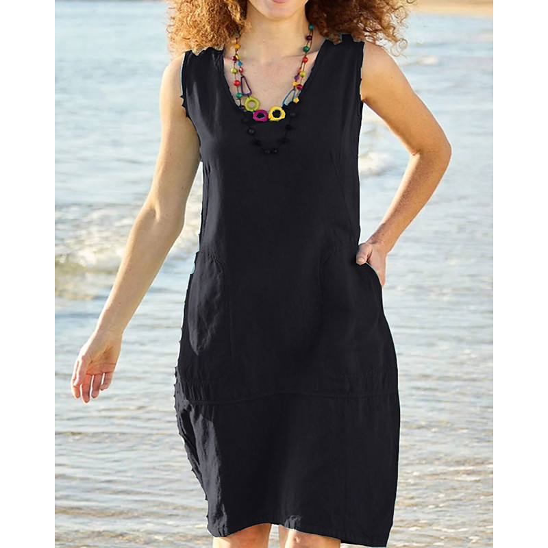 Women's Mini Dress Casual Dress Cotton Linen Dress Elegant Fashion Modern Daily Vacation Going out Loose Fit Plain Sleeveless U Neck Black White Dark Blue Grey Summer Spring Fall